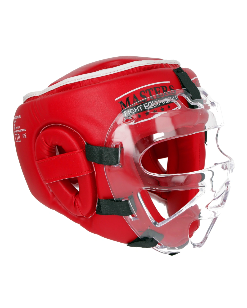 Masters Head Guard with PU coating and removable polycarbonate mask. Eva rubber padding. Adjustable velcro closure. WAKO approved, it can be used in Federkombat Kickboxing competitions.
