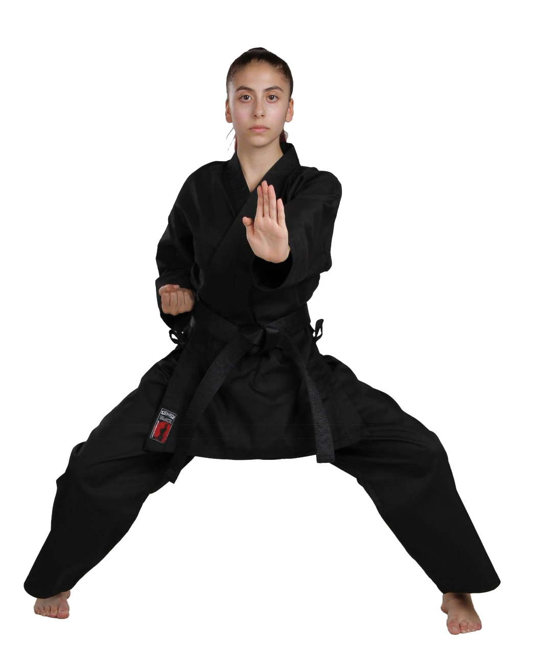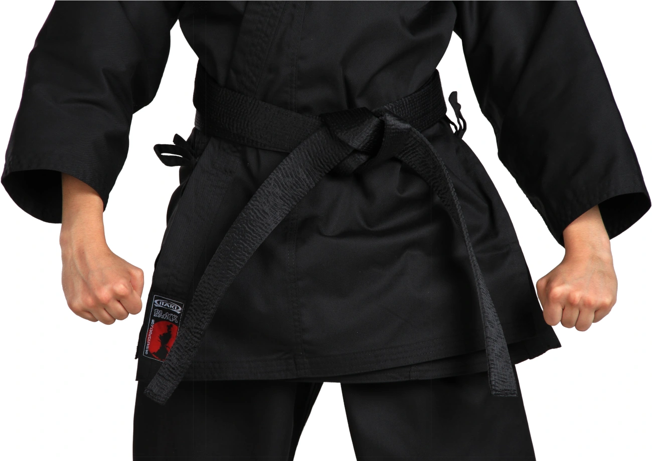The Karategi Itaki Black is a black three-piece garment with a traditional cut, made of a 240 g/m² cotton and polyester blend, light and breathable. Trousers with elastic waist. The white belt is included in the package.