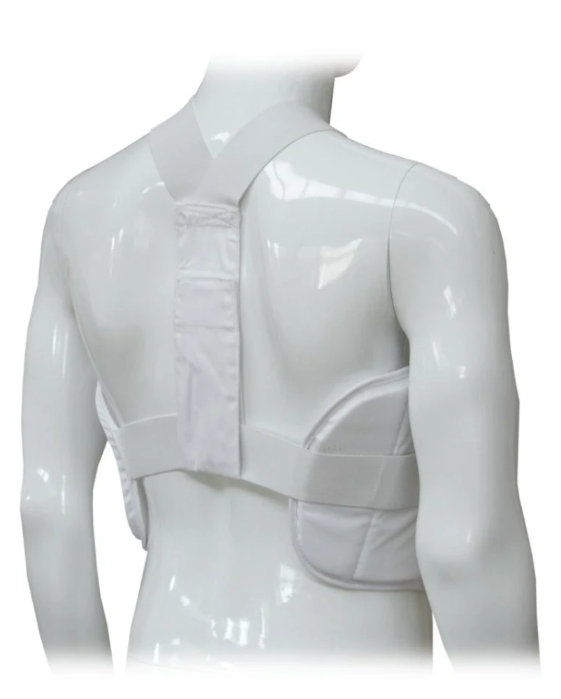 Adjustable lacing: Designed to offer a comfortable, tailored fit, the bodice fastens to the body via two adjustable elastics with Velcro closure positioned on the back. A horizontal and a vertical closure system allow the vest to be easily adapted to the user’s needs.