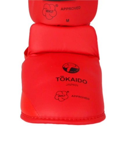 Tokaido shin guard for Karate Kumite. Anatomical and multi-layered padding for comfort and safety. Durable, soft to the touch and tear-resistant PU coating. Elastic and Velcro closure for a secure fit. Kanji Tokaido woven into the elastic. WKF approved. Sold in pairs.