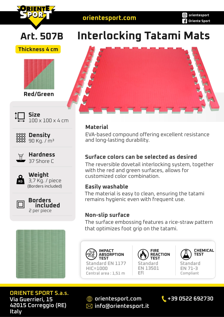 Material: Produced with an EVA rubber composition, the tatami guarantees excellent impact absorption capacity and long life.