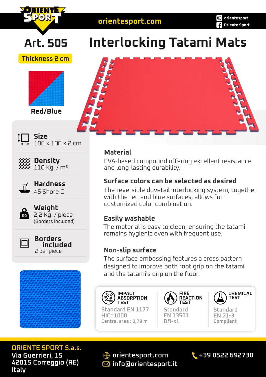 Material: Made of an EVA rubber-based mixture, the tatami offers excellent shock absorption and resistance over time.