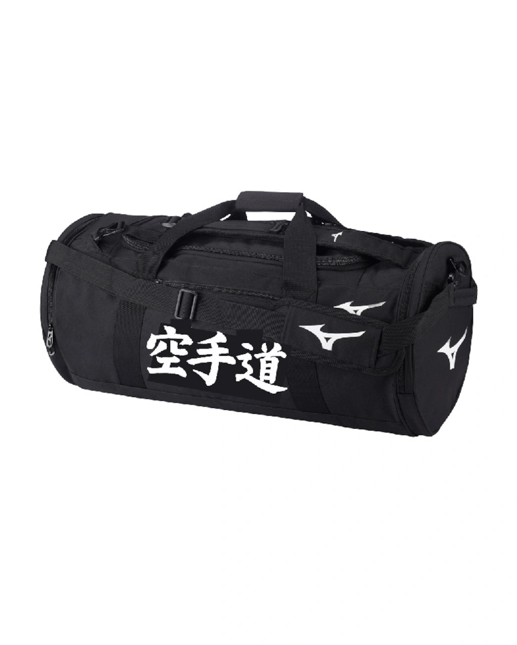 Mizuno Multiway Cylindrical Duffel-Backpack (diam. 29 cm, length 64 cm), usable as a shoulder bag or as a backpack. Large compartment for karategi and gear. Equipped with zippered side pockets, a front pocket, and internal pockets for personal items. Durable material. Ideal for the gym and daily use.