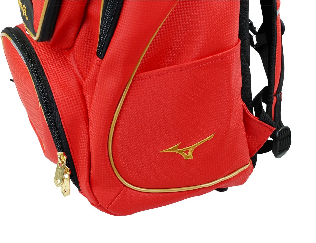 Material: Made from high-resistance technical material with a premium finish, the Mizuno Pro backpack ensures maximum durability and protection for its contents. The zippers feature an elegant gold finish.