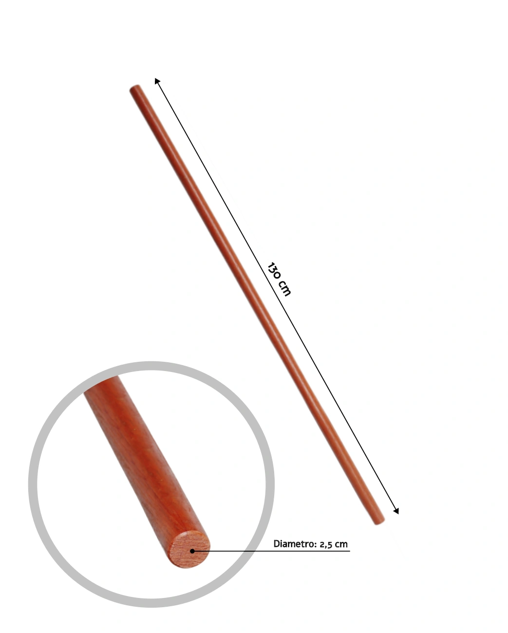 Dimensioni: La lunghezza totale è di 130 cm, con un diametro di 2,5 cm.