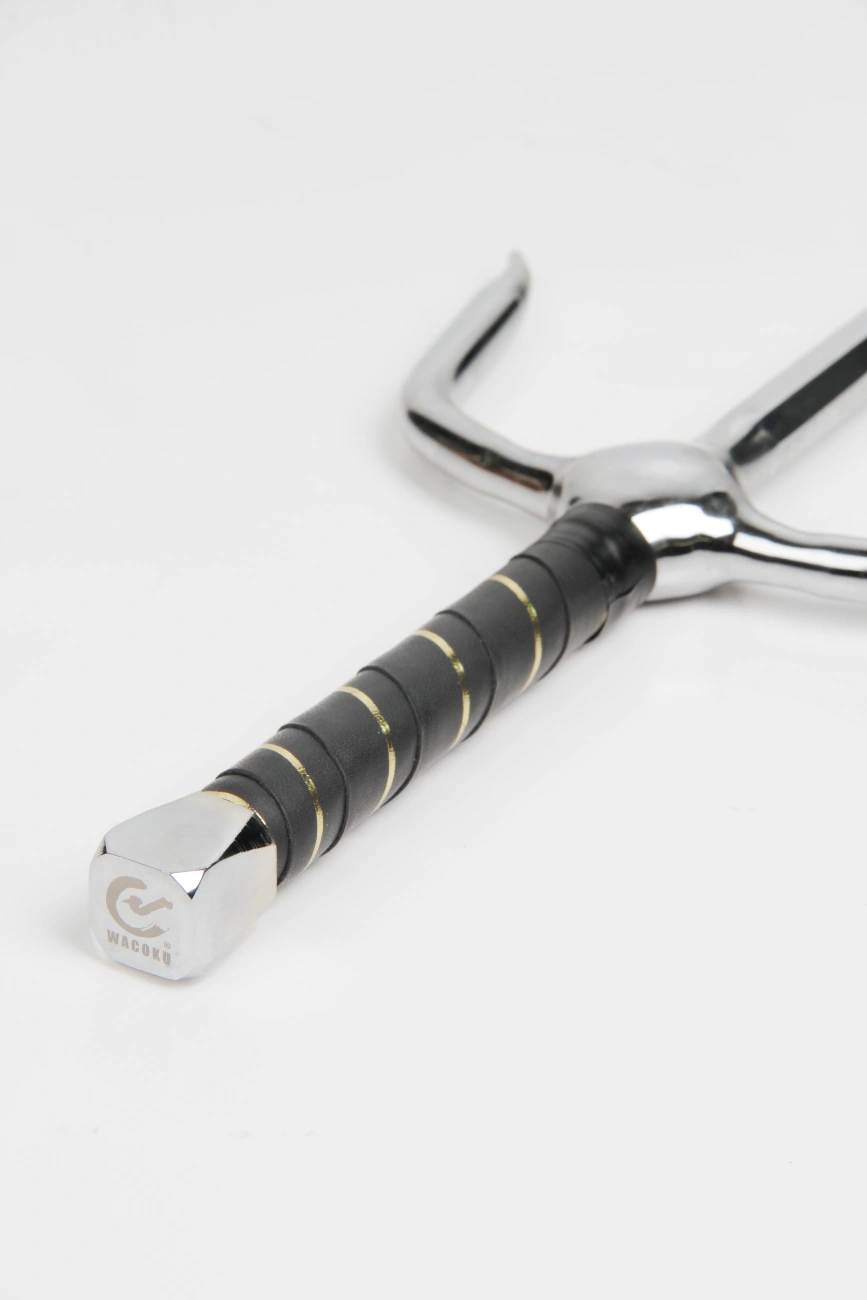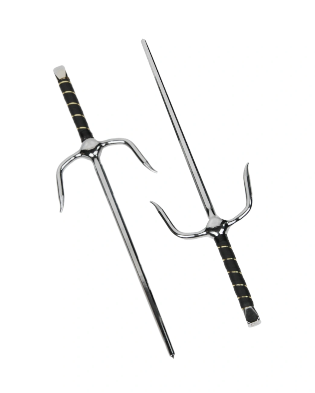 Materiale: Realizzato in acciaio cromato, il sai garantisce resistenza e durabilità nel tempo. L’impugnatura è rivestita in similpelle, offrendo una presa salda e confortevole durante l’uso.