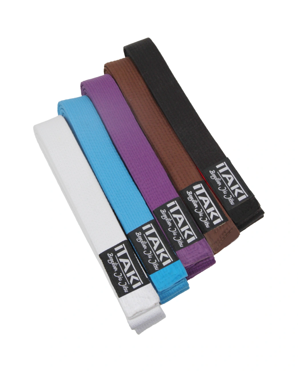 Cintura Itaki per Brazilian Jiu Jitsu con la tradizionale tacca per registrare i progressi di grado. Realizzata in cotone con 8 cuciture, ha una larghezza di 4,2 cm.