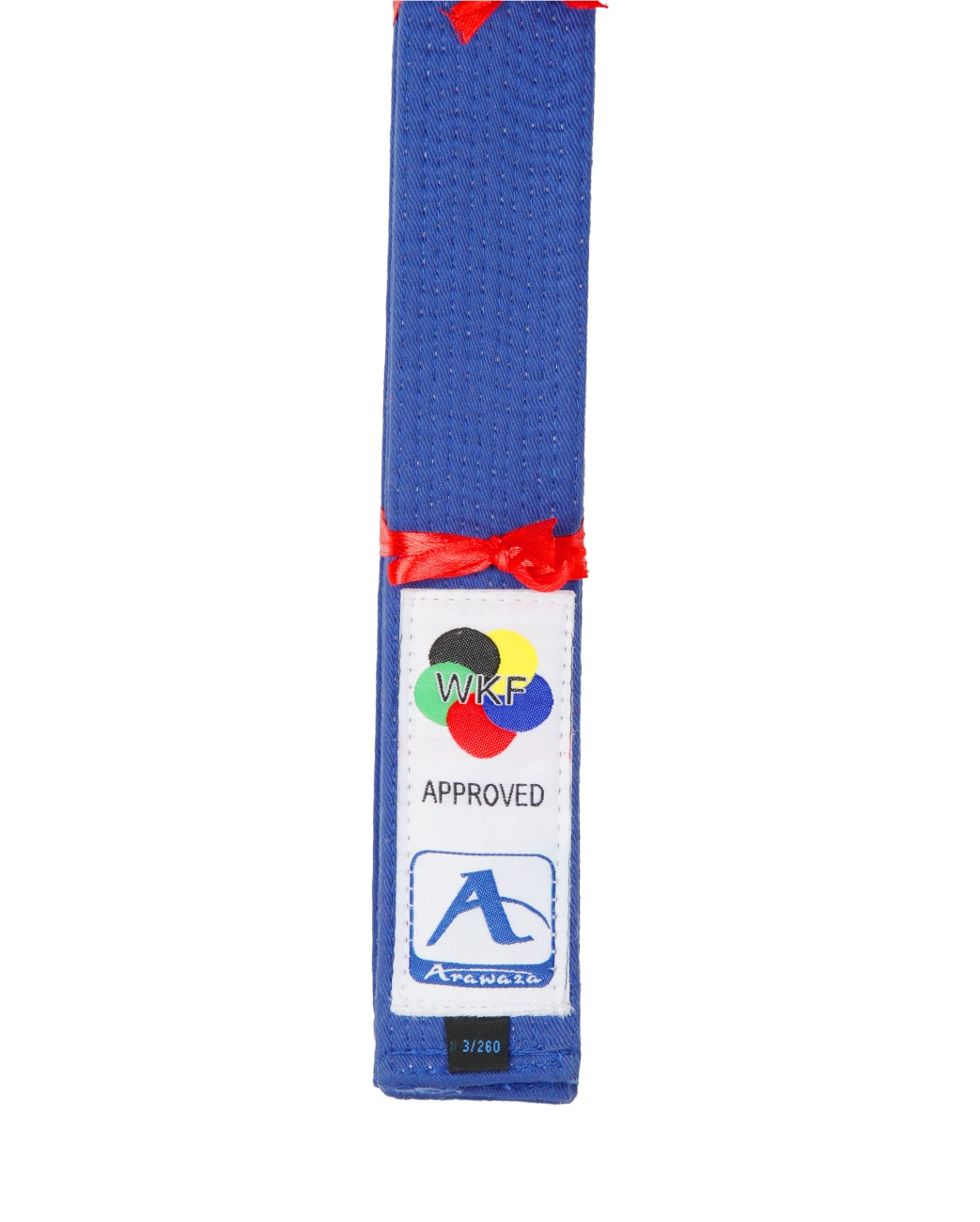 Design: La cintura Kata Arawaza WKF è realizzata con un’anima multistrato che offre la giusta rigidità, mantenendo al contempo una linea elegante e professionale. La sua struttura consente un’annodatura stabile e precisa, garantendo sempre un aspetto ordinato.