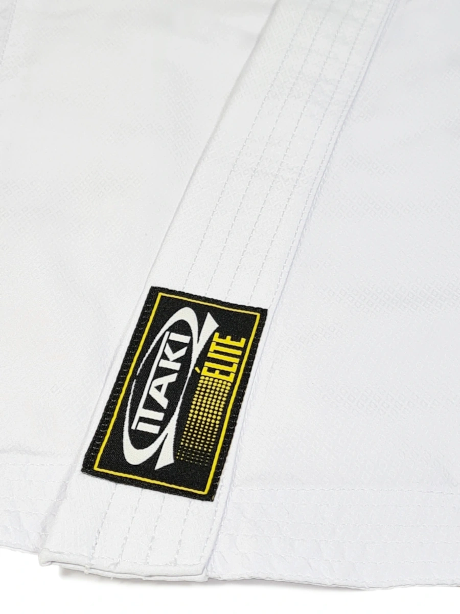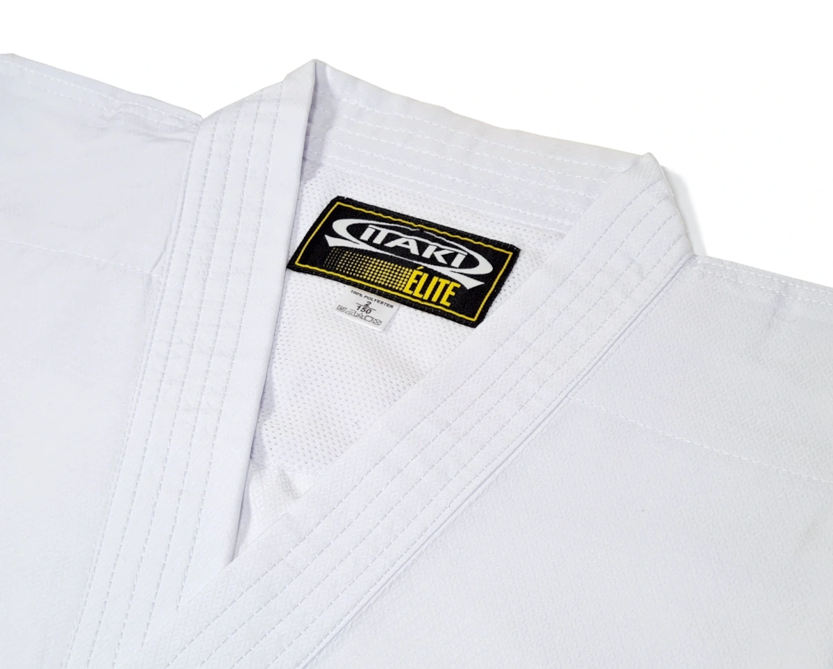 Il Karategi Itaki Élite è realizzato in tessuto poliestere superleggero da 140 g/m², ideale per gli allenamenti degli atleti di alto livello. I pantaloni sono dotati di elastico in vita con cordoncino interno. Il completo offre grande libertà di movimento per le tecniche di kumite.