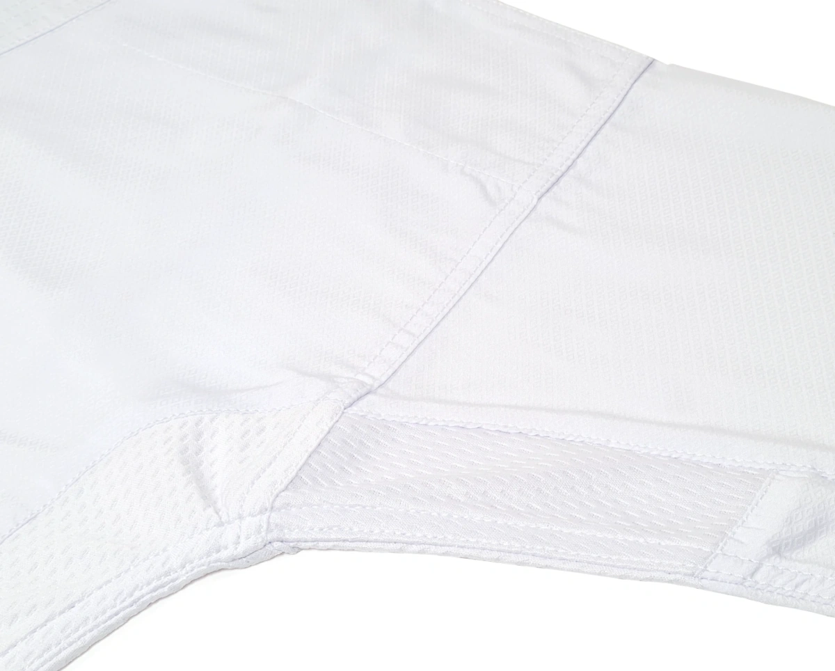 Traspirazione: Il karategi è dotato di inserti in mesh che migliorano la traspirazione, favorendo la dispersione del calore corporeo durante l’allenamento.