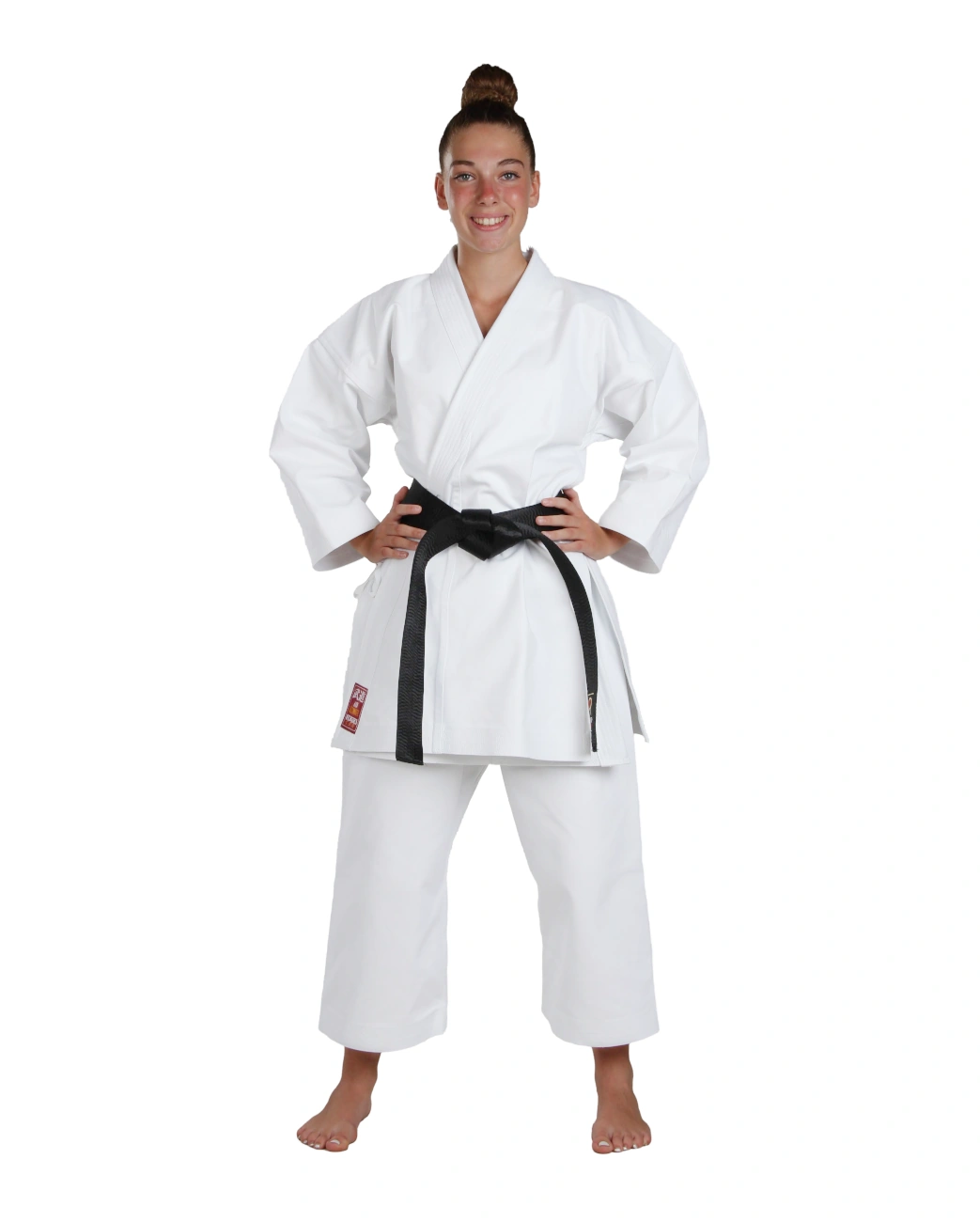 Karategi Ultimate in tessuto pesante da 420 gr/m², con taglio per il Kata. Cuciture rinforzate. Senza ricami, è ideale per chi cerca un indumento essenziale e di alta qualità.
