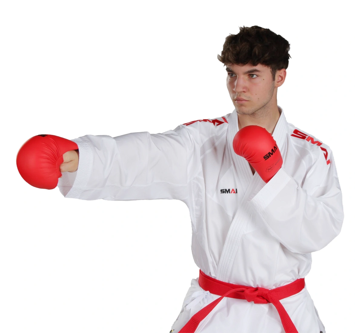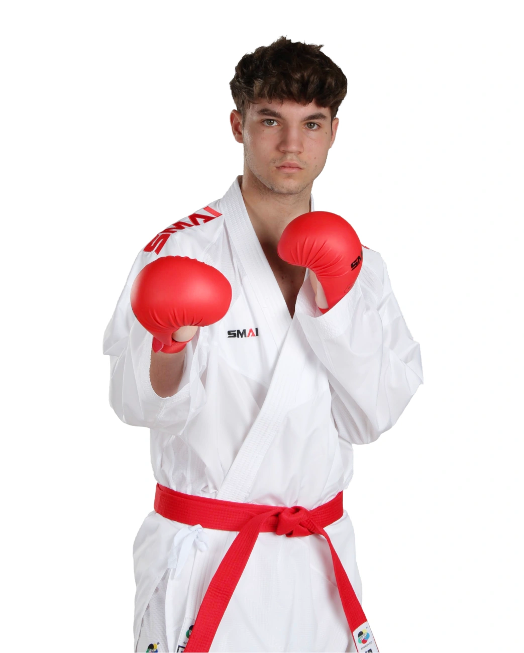 Il Karategi SMAI Inazuma Premier League Reversibile WKF, progettato per il kumite, offre un taglio avvolgente e un tessuto superleggero con inserti in mesh per una migliore traspirazione. I pantaloni sono dotati di elastico in vita e cordoncino per una regolazione perfetta. Approvato dalla World Karate Federation (WKF). Versione Premier League con giacca reversibile e ricamo SMAI rosso e blu sulle spalle. La cintura non è inclusa e può essere acquistata separatamente.