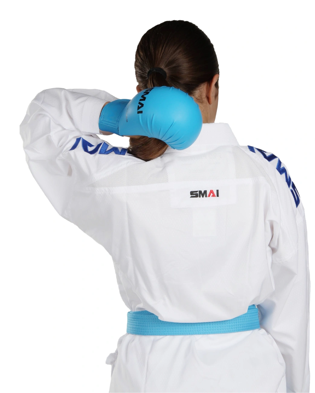 Versione Premier League: Il karategi SMAI Pro Fighter Premier League è venduto come set composto da due giacche, ciascuna con ricami SMAI sulle spalle in rosso o in blu, e un pantalone.