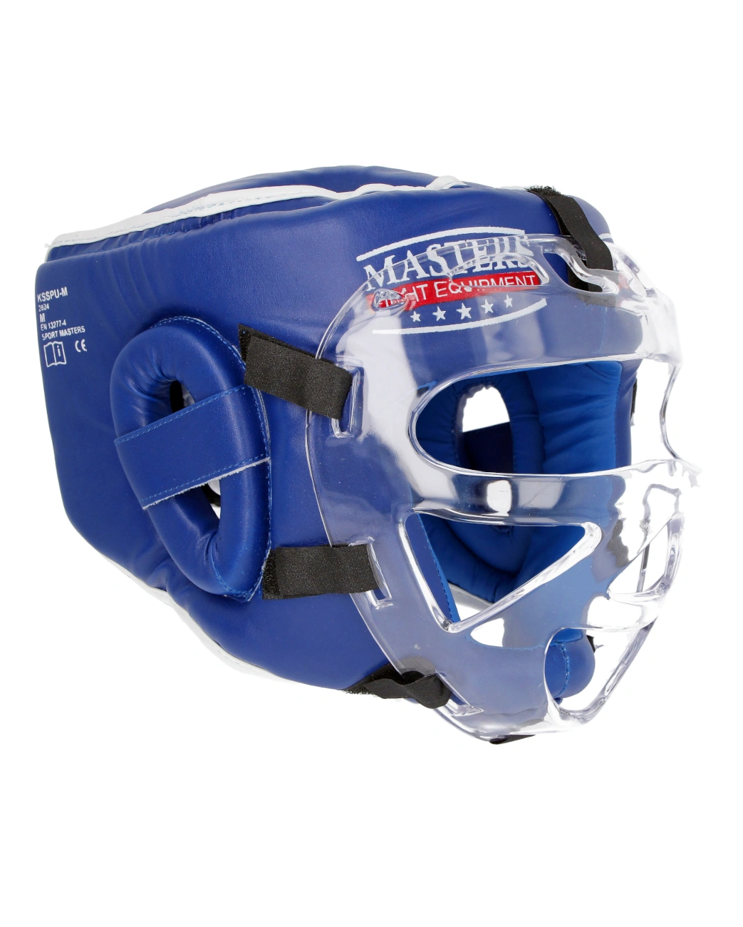 Caschetto Masters con rivestimento in PU e maschera in policarbonato rimovibile. Imbottitura in gomma Eva. Chiusura con velcro regolabile. Omologato WAKO, può essere utilizzato nelle competizioni di Kickboxing della Federkombat.