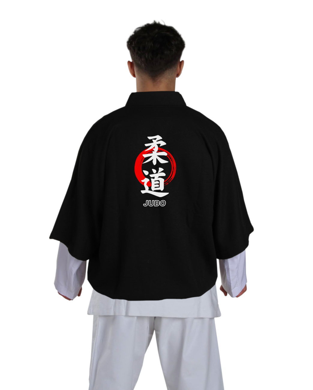 Design: Taglio giapponese ampio con maniche corte e collo a V, pensato per essere indossato facilmente sopra il judogi o il karategi.
