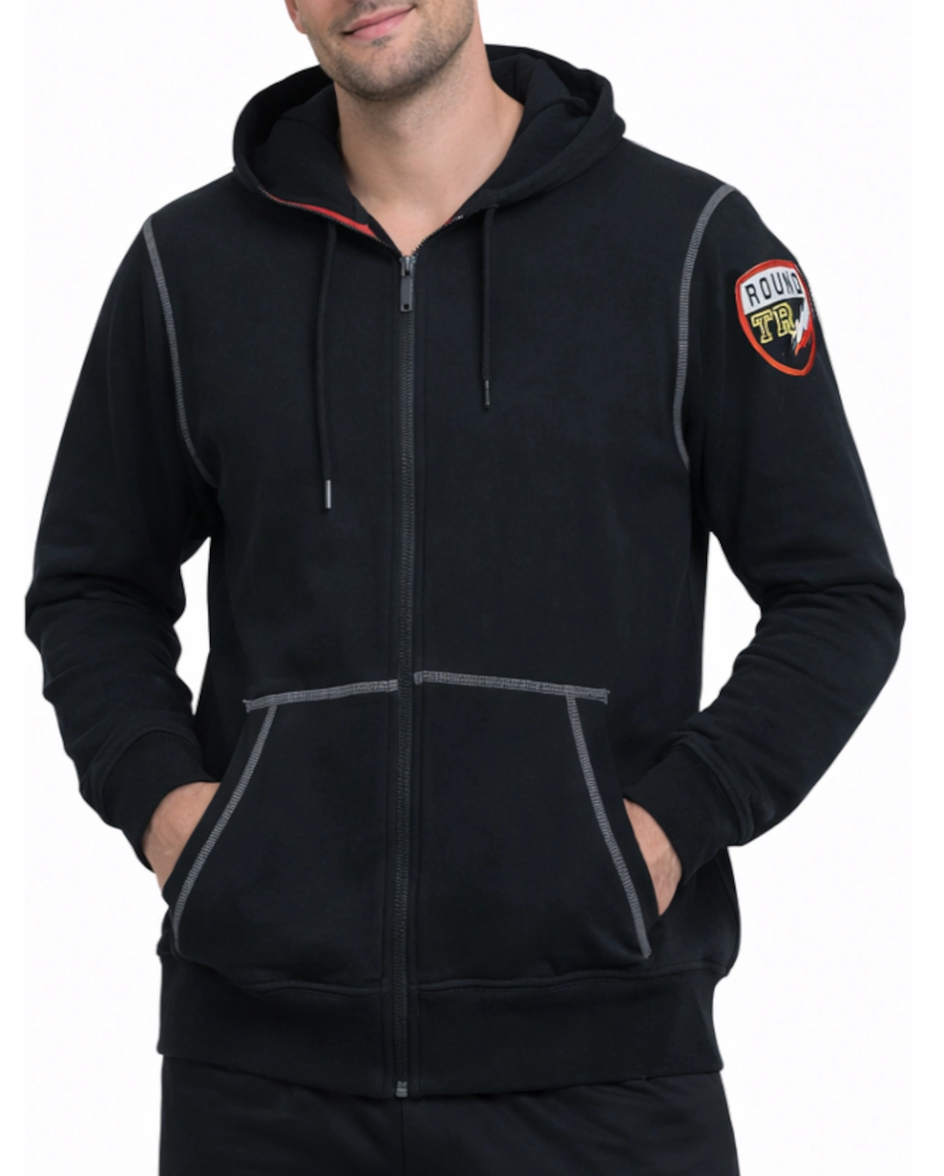 Dettagli: Caratterizzata da una pratica chiusura a zip su tutta la lunghezza, cappuccio regolabile con cordini in tinta e ampie tasche a marsupio divise. Si distingue per le finiture di alta qualità, come i bordi del cappuccio rifiniti, i polsini elasticizzati a costine e la patch celebrativa applicata sulla manica, che conferisce un look professionale e grintoso.