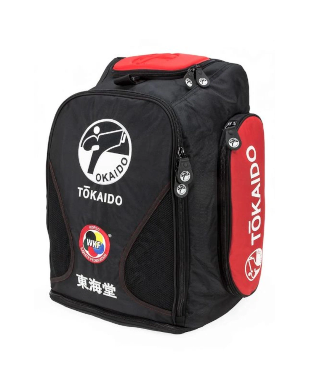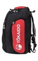 Borsa sportiva multi-funzione Tokaido Multi Functional Bag Pro in poliestere nero/rosso, utilizzabile come zaino o a tracolla. Dotata di schienale e spallacci imbottiti, fondo estensibile e piedini in gomma antiscivolo. Capiente, resistente e perfetta per allenamenti, gare e viaggi.