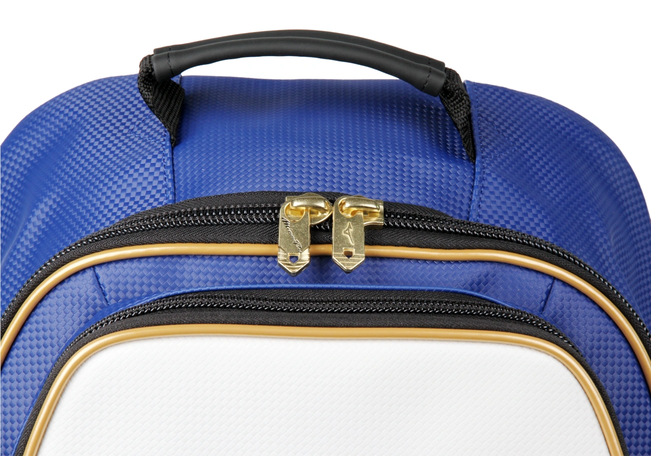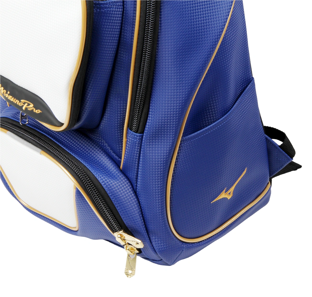 Materiale: Realizzato in materiale tecnico ad alta resistenza con finitura di pregio, lo zaino Mizuno Pro assicura massima durata e protezione del contenuto. Le cerniere presentano una raffinata finitura dorata.