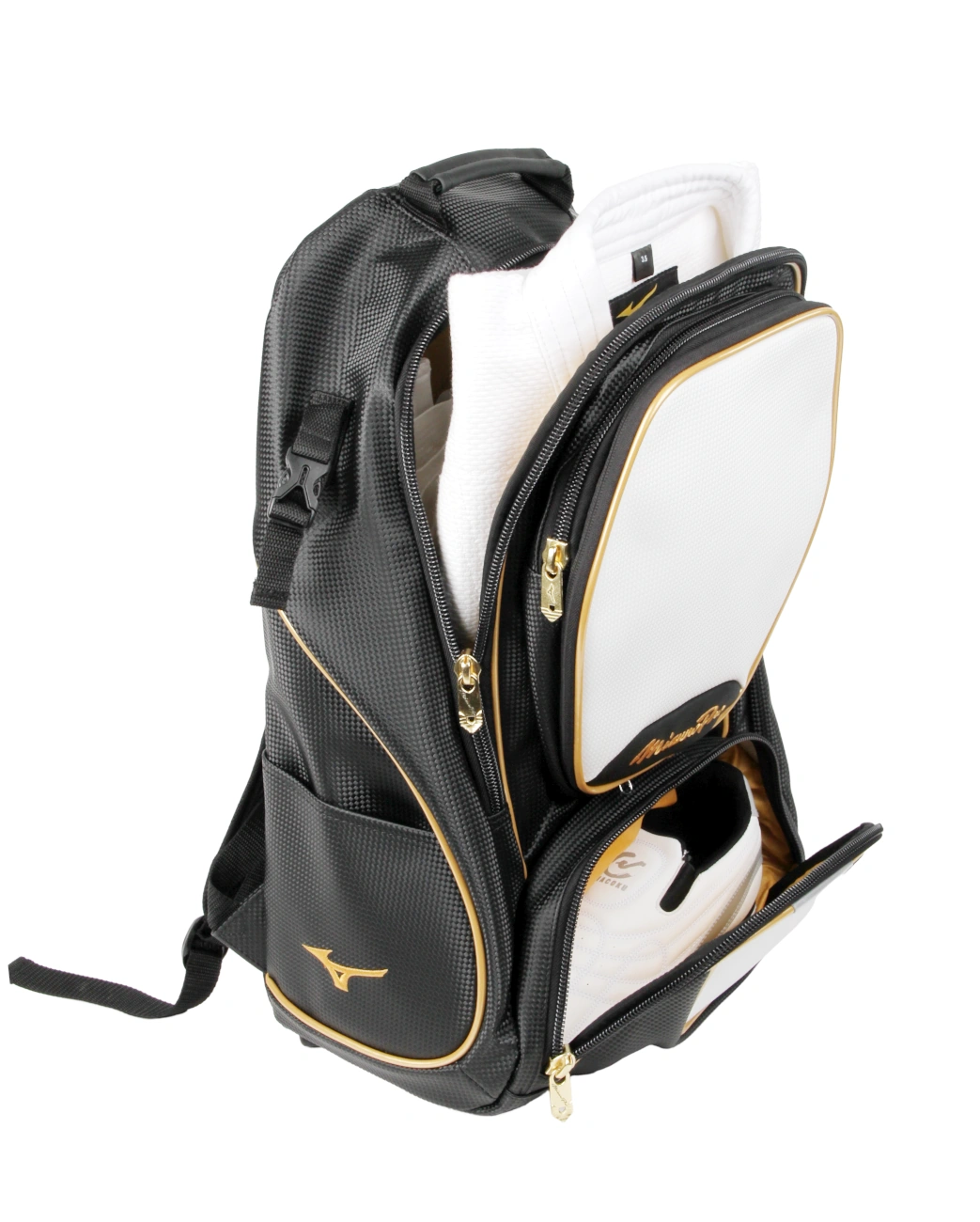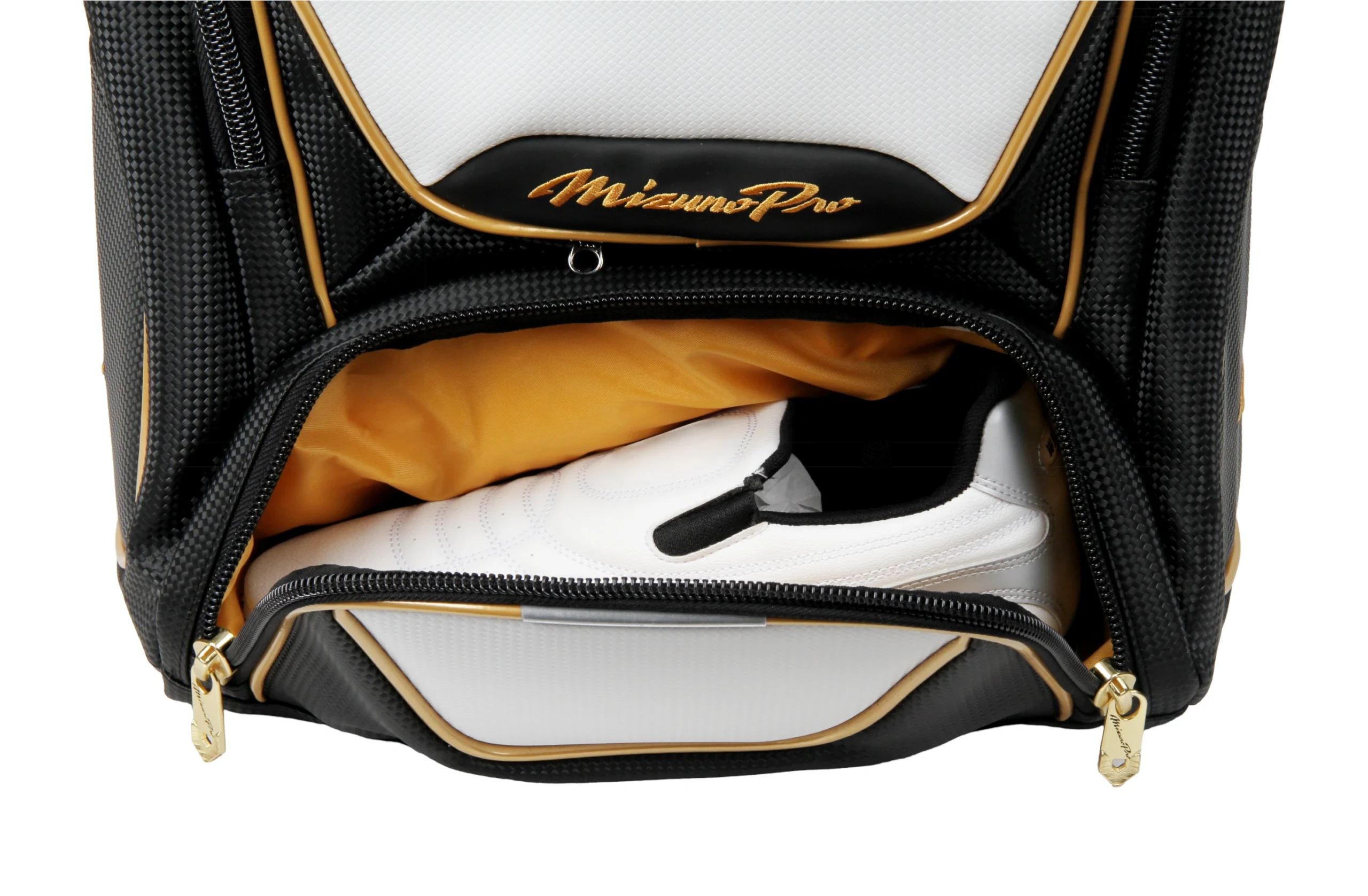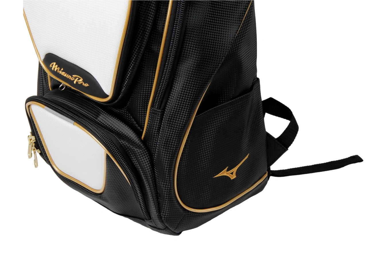 Materiale: Realizzato in materiale tecnico ad alta resistenza con finitura di pregio, lo zaino Mizuno Pro assicura massima durata e protezione del contenuto. Le cerniere presentano una raffinata finitura dorata.
